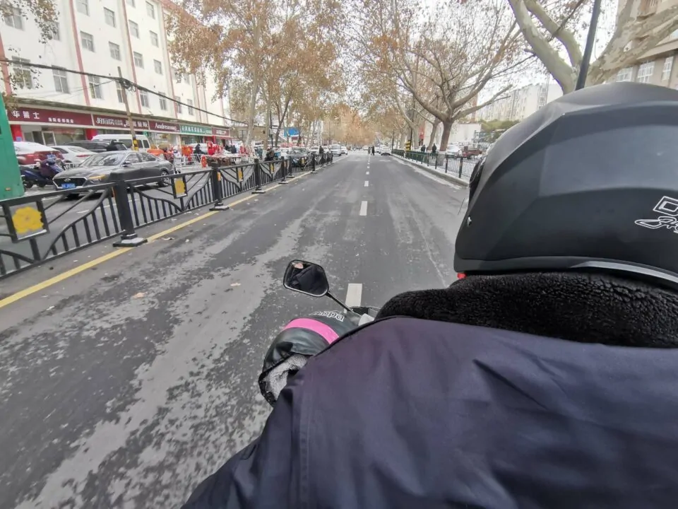下过雪的洛阳地面不是残雪就是冰渣,空气冷到手都伸不出来,本打算骑共享电动车,因没戴手套只好作罢。