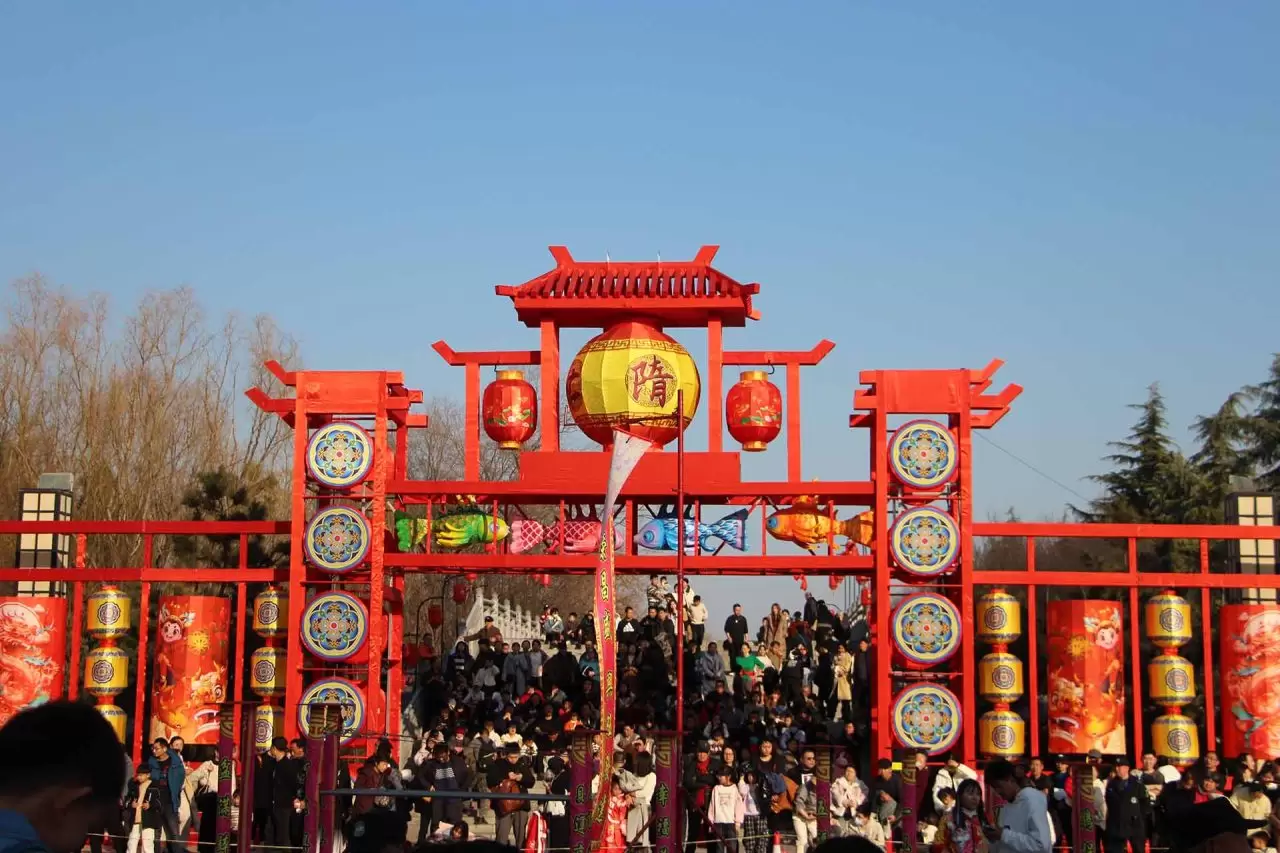 近几年打铁花璀璨夺目,老爸老妈一直想看。去洛阳隋唐植物园3逛春节庙会时,看到节目单上有两场打铁花甚喜。一场滴翠湖的水上打铁花,一场淳和广场的打铁花火龙。大红灯笼高高挂,敲起锣鼓幸福年,像这样的庙会不多见。