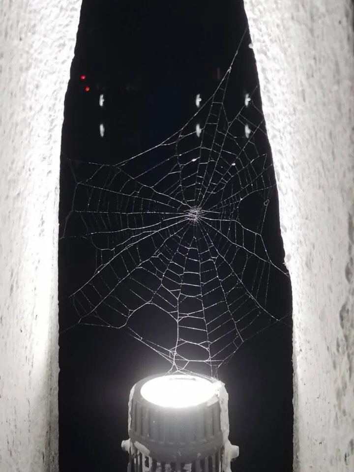 印象中完美的蜘蛛网从未见到,这种破烂不堪的蜘蛛网却随处可见。那些破洞的地方可能是飞虫用力过猛,也可能是一只不幸被捕食的小虫。