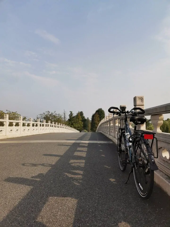不知是不是工作日,来这里的人不多,零零散散一眼看去用手指头都能数清,在拍照之际一个大叔骑着山地车快速从我身边经过。